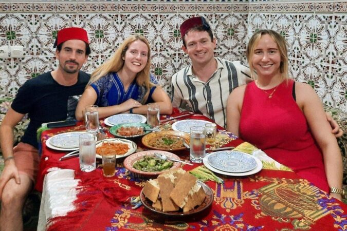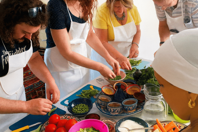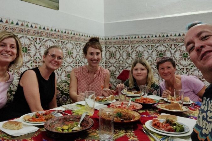 When the cooking is done, relax and enjoy the meal you’ve created together with the group, paired with traditional mint tea.